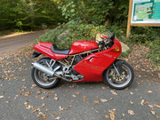 Ayant le projet de refaire à neuf cette machine qui a presque 80.000 kms, j'ai acheté un nouveau moteur en spare (le temps de refaire l'autre qui suinte un peu) à un passionné Ducat' qui m'a également fourni les pots d'origine : c'est plus lourd, look alu, un bruit plus feutré sans pour autant perdre son âme, et surtout, elle reprend désormais sans cogner à 2600 tr.min