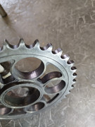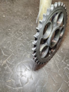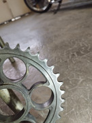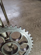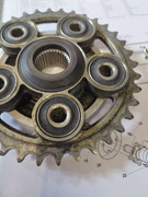 Non, ce n’est pas normal, et c’est dangereux…Il y a quelque chose qui est mal serré et/ou mal monté et/ou abîmé au niveau de l’ensemble couronne + porte couronne + silent blocs. Il faut tranquillement démonter tout ça (avec un système qui te permet de sortir l’ensemble sans mettre la moto par terre (une béquille qui prend par la droite, par exemple) et bien vérifier/inspecter les différentes pièces. En particulier les silent blocs et le moyeu excentrique. Utiliser un manuel d’atelier pour te guider serait également une bonne idée, car toutes ces pièces doivent être serrées entre-elles à la clé dynamométrique avec des couples bien précis, sécurité oblige.