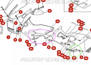 J'ai dégotté 2 semi-carénages d'origine afin de mettre ma 900SS en tenue d'été la saison prochaine ; j'ai trouvé la jonction plastique anti-vibration en pièce d'origine (en rose sur le schéma), mais ne trouve pas les 2 attaches latérales (en vert):