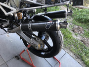 Une selle mono avec son dessous , pare-boue arrière , tableau de bord , cache embrayage .... on verra par la suite ....pour l’instant je bute sur la ligne Termi et la fourche Ohlins .....