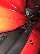 Il y a bien une petite trappe dans le V de carénage mais j’ai l’impression que ça ne va pas être possible par là… Où alors il y a une astuce ?!