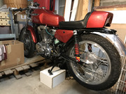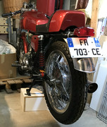 Maintenant il faut que je la ressorte, ce qui suppose un peu de démontage (la batterie, vu qu'il faut que je mette la moto à la verticale pour sortir de la cave...) Et un antivol pour son prochain lieu de stockage... Et enfin je pourrai tester le résultat !!