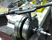 Alors l'ouverture des demi carters se fait en tapant un peu sur la queue de vilo et de l'axe primaire. Dans mon cas il a fallu y aller de bon coeur (en prenant soin de protéger les filets).Mais cela n'a pas suffit: il ne s'est vraiment ouvert que par le haut. On a donc mis de grandes vis de diamètre six dans les filetage sous le moteur pour pour décoller le joint en tapant sur les têtes de ces vis.