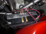 Oui c’est provisoire car cela ne me plaît pas non plus, c’est pas propre. Je réfléchis à quelque chose s’approchant du système original mais juste adapté au nouveau gabarit de cette batterie qui est nettement moins encombrante.