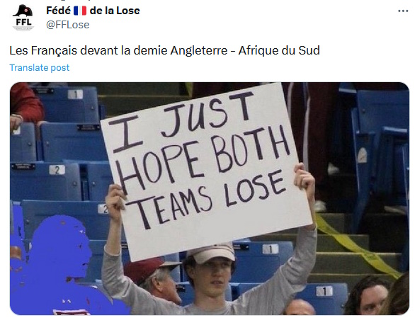 Ouais mais alors ça me ferait vraiment mal de voir l'Angleterre battre les Sud-Afs !