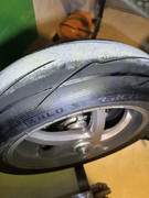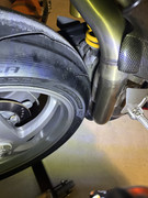 Petite question messieurs, je viens de constater quelque chose de surprenant sur mon pneu arrière, une trace est apparue sur l’ensemble de la bande de roulement qui est causé par un frottement sur une partie de la ligne d’échappement… je constate qu’il n’y a que quelques millimètres entre les deux, est ce normal ?