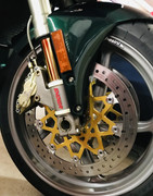 Les brembo à trois branches pèsent une vache, mais sont associées au look 916 originel
