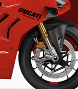 C’est un modèle US et c’était déjà obligatoire chez eux en 2004. Ça l’est visiblement devenu aussi en Europe depuis. Il y en avait sur ma 939 SS (collés sur les tubes de fourche Ohlins. Je m’étais empressé de les virer…). Après y avoir un peu réfléchi, j’ai décidé de ne pas y toucher car hormis 2-3 bricoles facilement réversibles (roues, couvercle embrayage, pare chaleur carbone), je préfère la laisser dans sa forme d’origine (exception faite du compteur en miles et de la température en F, là je n’ai pas eu le choix). Et puis j’aimerais aussi éviter de risquer d’abîmer la peinture en les enlevant. Ça fait 20 ans qu’ils y sont collés... Pour être tout à fait honnête, je ne les remarque même pas. Je trouve ça largement pire sur les V4.