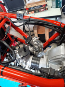Ensuite mise en place des carbus. Comme c'est un gauche et un droit du coup les réglages sont pas trop accessibles sur un des deux mais devrait le faire.