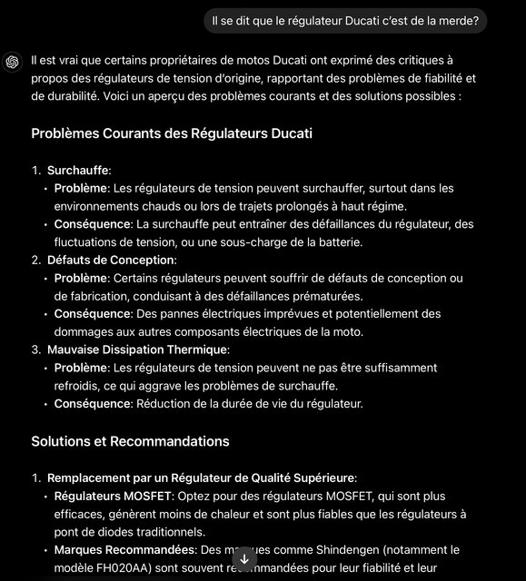 Le problème que l’on a avec le circuit de charge de ces motos se situe avant le régulateur, au niveau du connecteur traversé par le courant alternatif qui sort de l’alternateur, et qui n’a donc pas encore été redressé. Sur la 916, le fusible de protection du circuit de charge (30A - il passe à 40A après, sur 998 par exemple) est situé après le redresseur (en aval) et protège le circuit continu, pas le redresseur, dont les problèmes de surchauffe sont notoires (cf. tous les tutos de repositionnement de ce dernier à l’écart du moteur, dans un endroit exposé au vent relatif, etc.).