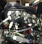 Je ferai les jeux et le reste lorsque j’en aurais terminé avec la partie cycle et le nettoyage de fond. Aujourd’hui, j’ai vidangé les deux tubes de fourche et fini de vérifier et nettoyer le faisceau derrière le tableau de bord. Tous les connecteurs débranchés, graisse diélectrique, etc. C’est nickel. J’ai également démonté, nettoyé et graissé les câbles du compte-tours et du compteur de vitesse. Plus qu’à changer les roulements de la colonne direction (+ un pneu neuf) et j’aurais terminé à l’avant.