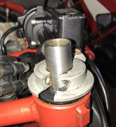 Oui pardon, c’est la bague filetée qui se trouve sous le té supérieur, juste au dessus du roulement. Elle est en alu très léger et la vis transversale sert uniquement à l’empêcher de se desserrer. Elle est par ailleurs vissée sur l’axe de la direction, donc il n’y a vraiment pas besoin de serrer la petite vis trop fort… :roll: