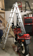 J'en connais qui font ça avec une paire de tréteaux et une bonne barre... c'est moins encombrant que l'escabeau peut-être.