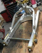 Du coup, j’ai pu remettre la béquille avant et suspendre l’arrière de la moto, afin de démonter la roue, l’amortisseur, etc. Au programme, gros nettoyage, changement des pneus et des silent blocks.