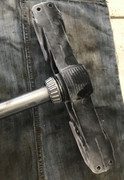 Le BO est tombé, l’axe est venu tout seul, je ne vais pas me plaindre. C’est une belle pièce en alu qui ne pèse pas bien lourd. Et bien nettoyé, c’est assez beau en fait.