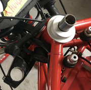 Ça y est, la colonne de direction est remontée avec de beaux roulements tous neufs! Le coup de l’axe au congélateur (1 nuit) et du roulement au four (5 minutes à 90 degrés) fonctionne parfaitement.