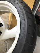 Pour témoigner du probable stockage depuis le début des années 2000: le pneu arrière de 4400 (44e semaine de l’année 2000), Pirelli Dragon GTS, encore raide neuf…