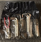 Et la super surprise du jour: en enlevant la selle de l’élue, j’y ai trouvé la trousse à outils d’origine. Elle est complète, avec quelques outils en rab. Le truc introuvable, je suis trop content !  :)