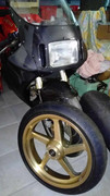 Et juste avant, j'avais trouvé (en France) une jante arrière en 6,25" de large (je n'avais pas vu que c'était une "large"... je m'en suis rendu compte quand j'ai reçu l'autre paire en les mettant côte à côte) de corsa pour 150€ qui avait servi (dixit le vendeur) juste pour exposition, donc à part montage démontage de pneu, état nickel (niveau matériau, rien n'était à l'air libre). Par contre, repeinte avec une couche de peinture laquée y compris dans les logements de roulement (peinture pas de qualité, une petite bande est partie sur un bord de la jante, je les stock au sec à l'intérieur, pas de risque), donc à refaire si je veux l'utiliser un jour.
