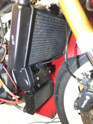 Un peu de fabrication ce week-end, les radiateurs n’étant pas protégés sur le 851. Ce n’est pas parfait sur le plan esthétique, mais c’est solide, fixé solidement et tout à fait fonctionnel. L’idée étant de préserver les radiateurs, évidemment.