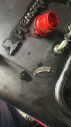 Rebonjour les collègues, j’ai bien reçu mes roulement pour l’tendeur de courroie tout a été changé. Je démarre la bête. Le problème est toujours présent suite à ça le suivi le conseil d’un des collègues qui a écrit de commencer par une vidange sur les bouchon de vidange comme sur la photo vous pouvez voir rien de beau et en avant la crépine j’ai trouvé un petit morceau effectivement il y avait un problème mais la question est où je laisse goûter tranquillement le moteur. Après je verrai avec une petite caméra pour essayer de regarder à l’intérieur. Sinon peut-être que l’un d’entre vous a une idée de quelle bêtise ça pourrait être vu que le moteur tourne. Je m’étais permis aussi d’enlever le cache d’embrayage, le Carter début. Je pensais que ça venait peut-être du roulement d’embrayage mais à cet endroit-là y a rien de suspect.