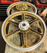 Fin de l’atelier jantes, avec des roulements neufs. Plus qu’à y mettre des pneus neufs. Ça va être  joli!