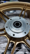 A priori l'angle d'inclinaison des étriers reste bon quand on inverse les tubes G et D mais l'écrou de l'axe se retrouve alors forcément à droite, alors que d'origine et sur les 2 montages Ducati, il est toujours à gauche...