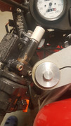 J'avoue, je m'incline devant tant d'ingéniosité dans le surcyclage du Okazou de sous-sol. Je suis quand même curieuse de savoir si le résultat final implique de rouler continuellement en ligne droite, ou s'il est permis de tourner le "guidon" sans :1) envoyer valser le téléphone (si le montage n'est pas très solide) ;2) déformer voir casser la bulle (si le montage est très solide) ;3) passer la moto en mode labour lors d'une sortie de route imprévue (si le montage ET la bulle sont très solides).Que dit le test routier ?